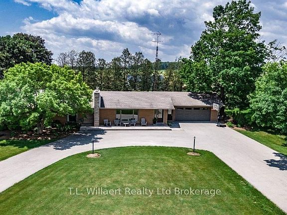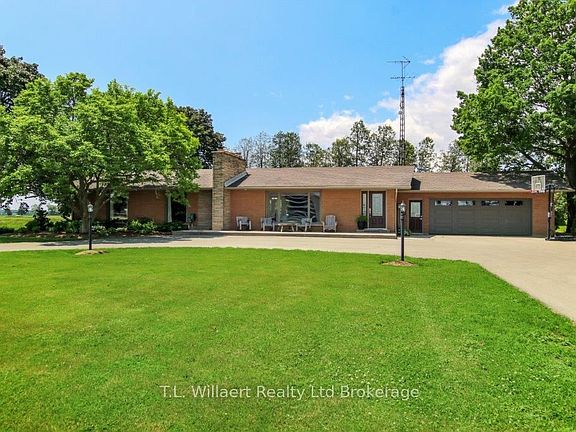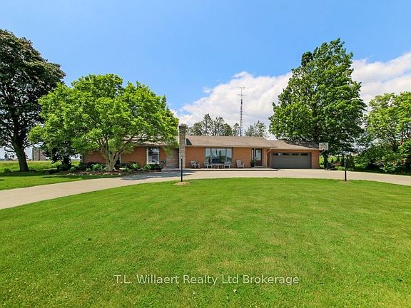 Welcome home! Nestled on a generous 0.58-acre lot surrounded by mature trees and lush landscaping, this beautifully maintained residence offers over 3,800 sq. ft. of finished living space and a perfect blend of elegance, comfort, and functionality. Step inside to discover hickory hardwood flooring throughout and high-end finishes that create a warm, inviting atmosphere. The open-concept layout is ideal for both everyday living and entertaining, with large windows that flood the space with natural light. At the heart of the home is a custom cherry wood kitchen, thoughtfully designed for both style and practicality. Gather with loved ones in the spacious living areas, complete with both gas and wood-burning fireplaces. The main level features three spacious bedrooms, including a luxurious primary suite with a walk-in closet and a private ensuite bath. Downstairs, the fully finished basement offers two additional bedrooms and a separate entrance ideal for multigenerational living or a private in-law suite. Outside, enjoy the convenience of an oversized 2.5-car garage and an expansive driveway with room for 12+ vehicles perfect for families and entertaining guests. Located just a 15-minute commute to Highway 401, this home offers peaceful suburban living with excellent access to major routes, making it a commuters dream.