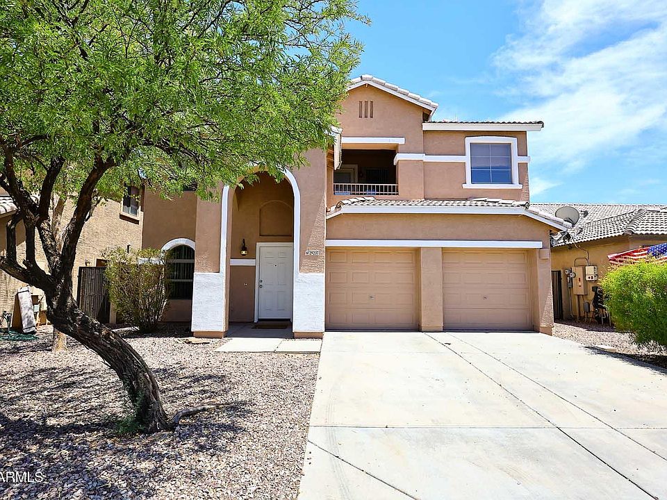 This lovely home is located right on the golf course inside the highly desired Johnson Ranch Master Planned Community!Fresh paint inside and out. 18'' tile installed Throughout kitchen, high traffic areas, bathrooms and laundry room! new vinyl plank up stairs With nearly 2500 sq feet of space, there is plenty of room for any family! 4 bedrooms with the the master suite being very large & boasting his & hers master closets, dual sinks & separate tub/shower amenities, along with a private outdoor balcony off the suite. 2.5 baths & high vaulted ceilings gives a feeling of A great spacious home.