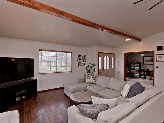 Welcome home to a neighborhood filled with mature trees. Step inside to an open-concept layout that connects the living, dining, and fully renovated kitchen—all filled with natural light. A cozy gas fireplace anchors the living space, perfect for relaxing evenings. Recent upgrades include new carpet, modern light fixtures, updated electrical devices, fresh exterior paint, and new blinds in the bedrooms. Located just minutes from the new rec center, this home blends comfort, convenience, and a move-in ready feel in one great package.
