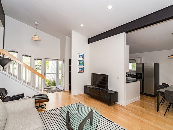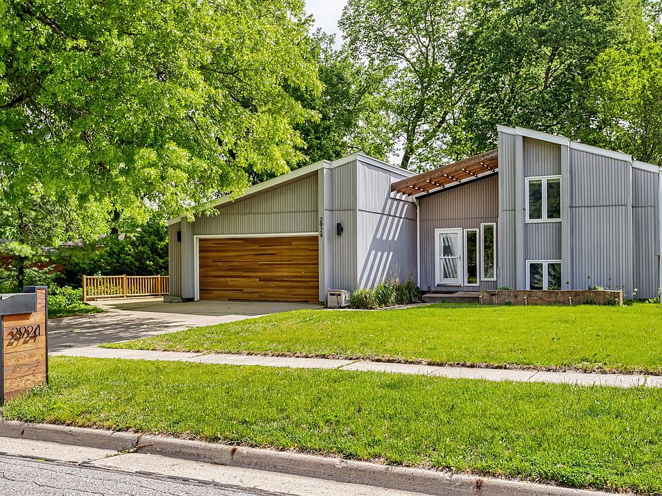 Step inside this beautifully updated mid century modern inspired contemporary home. This split-level home offers a thoughtful layout and modern updates throughout. Upon entry, you're greeted by vaulted ceilings in the living room that create an open atmosphere. Just beyond the living room, you’ll find a family room featuring stunning floor-to-ceiling windows, the perfect place to enjoy your morning as sunlight pours in. The kitchen boasts stainless steel appliances, ample storage space and flows effortlessly into an informal dining space ideal for everyday meals or entertaining. Upstairs provides two spacious bedrooms and a 3/4 bath, while the lower level includes two additional bedrooms and a full bath. Head to the basement to discover a home theater room complete with surround sound and projector, perfect for movie nights, plus a 5th non-conforming bedroom currently used as a gym, and a dedicated laundry room. This home features a walkout to the backyard from three different levels. Throughout the home, newer engineered hardwood flooring adds durability and style. Outside, enjoy the convenience of a 2 car attached garage, a two-level storage shed, and a deck shaded by mature trees. A second deck is located next to the garage and walks down into a garden area. This property also sits next to a city-owned wooded lot to the north and east, providing additional privacy! Located in SE Ames, you’ll enjoy easy access to both Hwy30 and I-35, as well as all amenities along Duff Ave.