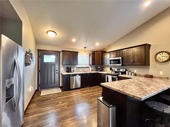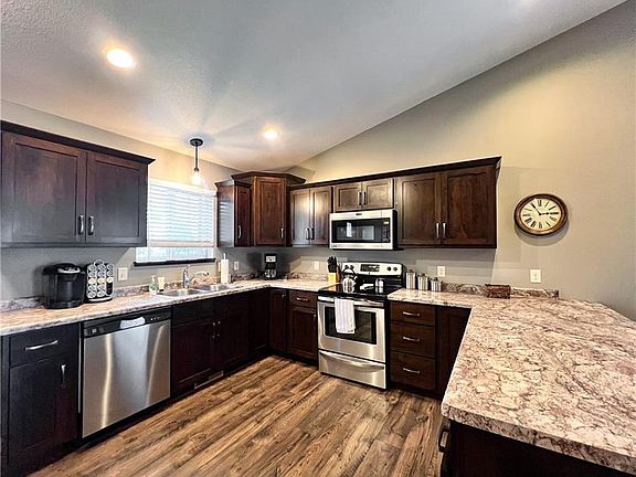 Modern design and chic accents welcome you into this twin home! Step inside to find open concept living spaces featuring a kitchen with eat-in dining option, custom cabinetry with 3 lazy Susan?s, walk in pantry, and stainless-steel appliances. The easy flow to the dining area and living room with walkout to the patio make entertaining a breeze. Enjoy a spacious master ensuite offering a full bath and a walk-in closet. Additionally, the main level features a half bath, laundry/mud room, and an entryway from the 2-car attached garage. The lower level offers a large family room, two spacious bedrooms, a full bath, and additional storage space. Enjoy meticulous landscaping and an inground sprinkler system to help maintaining it easy. Updates include: new roof in 2023, Irrigation system installed in 2022, new microwave, new garbage disposal.