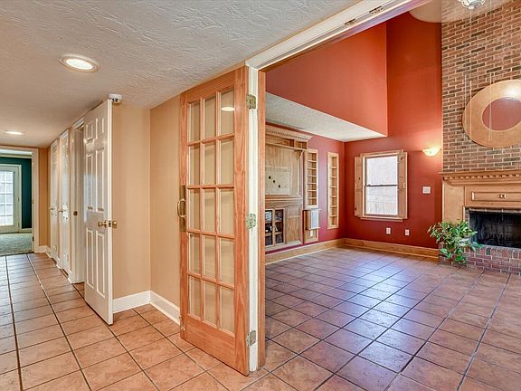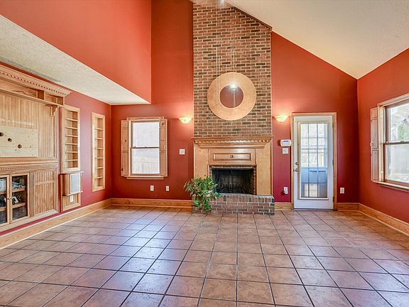 -Warm & cozy LIVING ROOM AREA with custom shelving & cabinets, soaring ceilings, and a cozy fireplace. Access to a deck & patio area, perfect for morning coffee or grilling with friends! Doggie door on the storm door! Another separate Storage room
