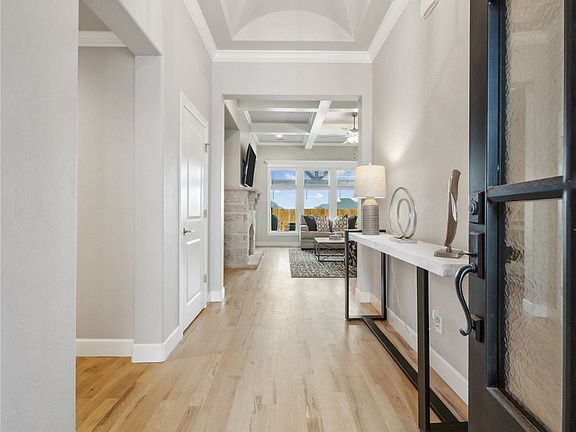 premium finishes, including wood floors throughout, Kitchen with granite, custom-built cabinets, large walk in pantry and pot filler. Large Living Room with cozy stone fireplace and wall of windows perfect for letting in the natural light. 4 Bedrooms and 2.5 baths (4th front bedroom could be a study). Spacious Primary bedroom and ideal bath with double sinks, soaker tub and seamless walk in shower with a convenient bench open to the Laundry and Mud Room. Super energy efficient home with spray-foam insulation, 16 SEER AC, 95% efficient furnace. Welcoming A-frame patio overlooking fully fenced yard.