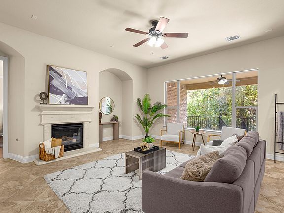 This elegant 1.5-story beauty in sought-after Sarita Valley truly has it all—privacy, views, and designer touches throughout. With 3,278 sq ft of refined living space, this home offers 3 bedrooms, 2 full and 2 half baths, a dedicated office, game room, and media room. Perfectly positioned on a peaceful greenbelt with the park right next door, it’s the ideal blend of tranquility and convenience. Step inside and fall in love with the bright, open floor plan framed by a wall of windows and graceful archways. The living room features a cozy gas fireplace and stunning views of the backyard. The chef’s kitchen shines with granite counters, a large island, gas cooktop, double ovens, stainless appliances, and a sunny breakfast nook that opens to the covered patio—perfect for entertaining or relaxing outdoors. The serene primary suite feels like a private retreat, complete with a spa-inspired bath featuring dual vanities, an oversized walk-in shower, soaking tub, and spacious closet. Upstairs, enjoy movie nights in the media room or game nights in the versatile bonus room with its own half bath. Unwind beneath the shade of mature trees on the patio or take a short stroll to the community trails and pool. With a 3-car garage, sprinkler system, and energy-efficient design, this home perfectly combines luxury, comfort, and location—just minutes to Reagan Blvd, shopping, dining, and top-rated Leander ISD schools!