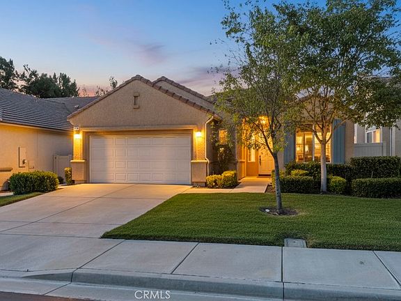 This beautifully maintained single-story home is located directly on the Golf Course in the highly sought-after 55+ Resort-Style Community known as “The Oasis”. This all-electric, energy-efficient residence combines comfort and functionality with an owned solar system, newer air conditioning installed in 2018, and a Quiet-Cool whole-house fan for maximum energy efficiency. Inside, you’ll find tall ceilings, crown molding, sun-screens, and ceiling fans throughout, creating a bright and comfortable living space. The open-concept layout features a spacious Great Room with a tile fireplace and built-in office area, ideal for working from home or managing hobbies. The Home Office could also be used as a 3rd Bedroom if needed. The eat-in kitchen offers ample cabinetry, generous counter space, and an inviting casual dining area perfect for everyday meals. The Master Bedroom suite provides a peaceful retreat with a large walk-in closet and an upgraded walk-in soaking tub installed in December 2023. The laundry room includes tile flooring, a utility sink, and extra storage. Step outside to enjoy low-maintenance landscaping with artificial turf, stamped concrete, and an alumawood patio cover with ceiling fan, overlooking the lush golf course with gorgeous mountain views. Additional highlights include an insulated garage door with built-in cabinets, a water softener, and a water heater blanket. The Guard-Gated community of Oasis offers resort-style amenities including a 22,000 sq. ft. clubhouse, pool, spa, fitness center, pickleball courts, bocce ball and a full schedule of social events and activities! The monthly HOA includes front yard maintenance and landscaping, water and trash service. The Oasis is conveniently located near shopping, dining, medical facilities, freeway access and just a short drive to the well-known Temecula Valley Wineries and Southern California Beaches, Desert, and Mountain destinations. This property truly offers it all…style, location, community amenities and functionality!