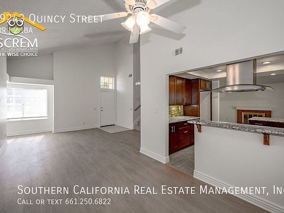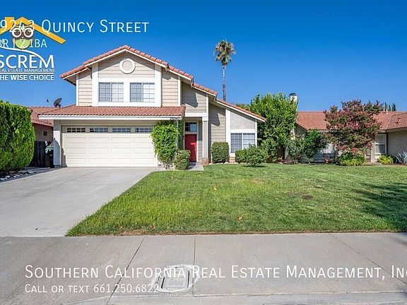 Gorgeous three-bedroom home across the street from a park and elementary school in Castaic. Upon entering, you'll find yourself in the formal living and dining room with vaulted ceilings and beautiful new vinyl plank flooring. The dining area opens to the updated kitchen, which features cherry wood cabinetry, granite countertops, a farmhouse sink, upgraded stainless steel appliances, and recessed lighting. Kitchen appliances include a gas stove with a modern hood, a single oven, and a dishwasher. The family room features wood laminate flooring, a brick fireplace, and a sliding glass door leading to the backyard. The lovely backyard features a covered patio and pavers leading to a second patio area and nice lawn. There is a half bathroom downstairs. Upstairs are two guest bedrooms with new carpet flooring and a full guest bathroom. The spacious primary bedroom has vaulted ceilings with a ceiling fan, new carpet flooring, a walk-in closet with mirrored closet doors, a closet organizer, and an attached full bathroom with another closet, and a vanity with a sitting area. This property includes an attached two-car garage with a full-size washer and dryer, as well as built-in shelving. Conveniently located to shopping and the 5 freeway. *No pets