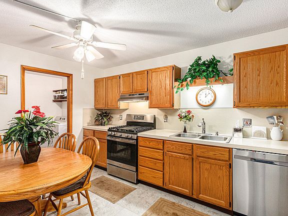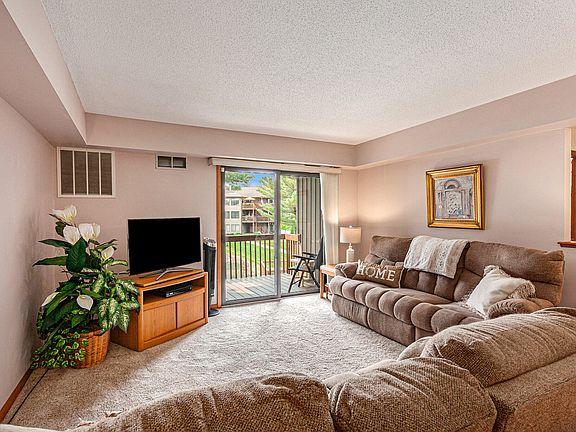 Welcome to Arbor Lake Condos! This pleasing main floor, 2 bedroom condo is ready for you to call home. Features spacious open Living room with slider to private deck and a gorgeous pond & yard view, updated kitchen with new flooring and all newer appliances, nice size Master bedroom, new carpeting in 2nd Bedroom, in unit laundry room washer & dryer included and a 1 car detached garage nearby, updated furnace & A/C, and newer water heater. Conveniently located to restaurants, shopping, highways.