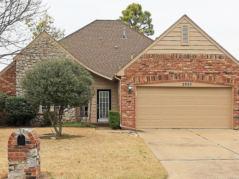 Beautiful one level home with high vaulted ceilings, spacious master suite with whirlpool tub, his & her sinks, walk in closet. New master shower. Den kitchen with fireplace, breakfast nook and bay window. New covered outdoor living area overlooking pool. Brand new carpet in all 3 bedrooms, brand new variable speed pool pump. New HVAC, hot water tank and fence. Located in Jenks Southeast school district.