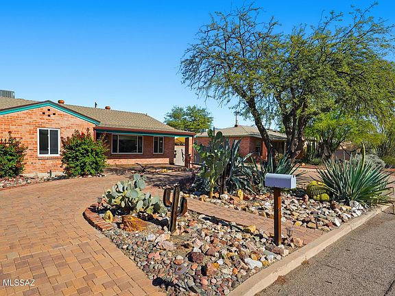 Seller to entertain offers between $360,000.00 and $370,000. Located just a few miles from the University of Arizona on a quiet street, this delightful 3-bedroom, 2-bath home offers comfort, character, and convenience. Enjoy relaxing evenings on the welcoming front porch, bring your vision to life in the spacious double-backyard-ready for your personal touch. Key Features Include: Gated carport & circular driveway w/stylish pavers, newer windows, AC, & roof w/gutters (2025). House has been replumbed to the street. All appliances convey: 2 refrigerators, washer /dryer, & a great gas stove. Upgraded kitchen cabs & vintage built-in cabinetry in dining room. This home has all the updates that count, while preserving its vintage charm.