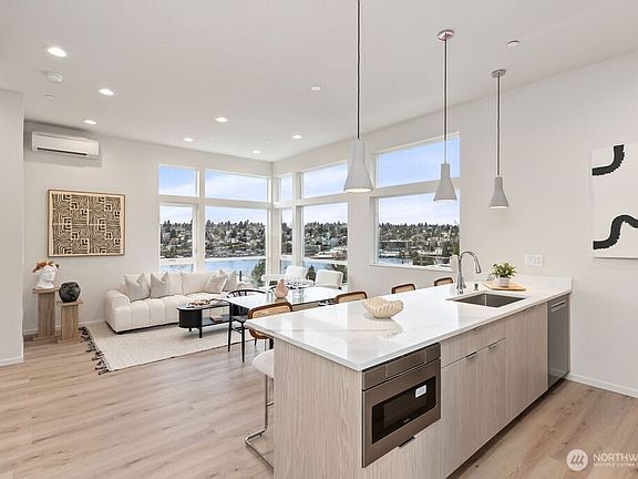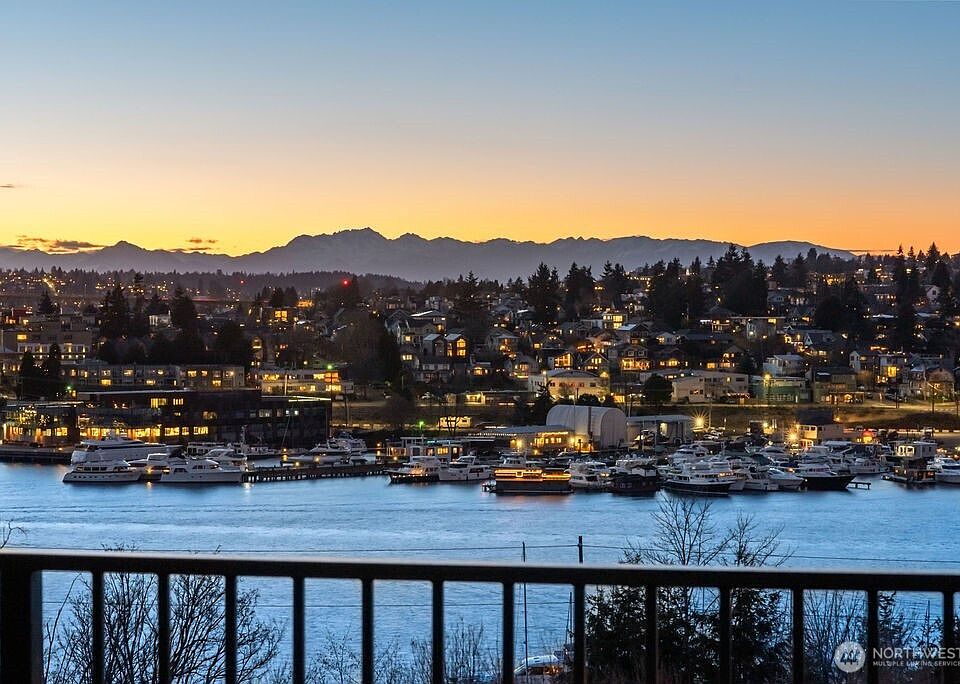 Stunning Multi-Level Home with Panoramic Views! This unique property offers breathtaking views of Lake Union, Gas Works Park, and the city. The main floor features additional living space that can function as an ADU complete with it's own entrance, bedroom/office, full kitchen, .75 bath, and washer/dryer hook-up—ideal for guests or rental income. The main home boasts two master suites, spacious living areas, and a sleek open kitchen with high-end appliances and a large island. Take in the views from the covered balcony and patio. Pre-wired for motorized blinds, with double-insulated walls and concrete flooring for superior soundproofing. Designated parking for each unit. A rare find!