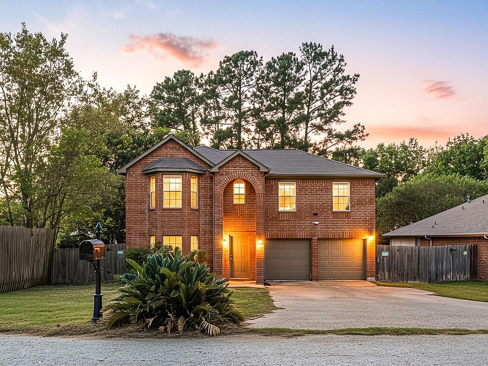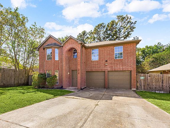 Welcome to this charming red-brick 2-story home featuring 4 bedrooms, 2.5 baths, a home office, formal living/dining combo, and a game room! Step inside to a flexible formal living area—perfect as a second living space or work zone—that flows seamlessly into the formal dining area. The bright family room offers a cozy fireplace and opens to a modern kitchen with granite countertops, ample cabinetry, and a walk-in pantry. Enjoy brand-new vinyl flooring and NO carpet throughout for a clean, modern touch. Upstairs offers a spacious game room and a generous primary suite featuring an oversized shower with a rainforest shower head, new vanity, and a walk-in closet. Sitting on a HUGE LOT, the private backyard is peaceful and perfect for relaxing under the stars by the cozy fire pit—your own serene retreat right at home. Never flooded & not in a flood zone! Ideally situated just minutes from I-45 and Lake Conroe. See the list under the attachment for full upgrades.