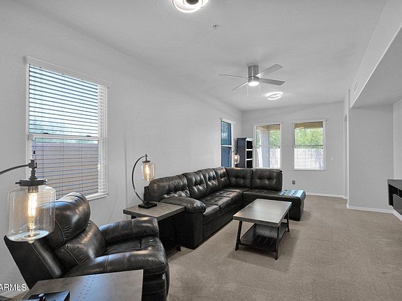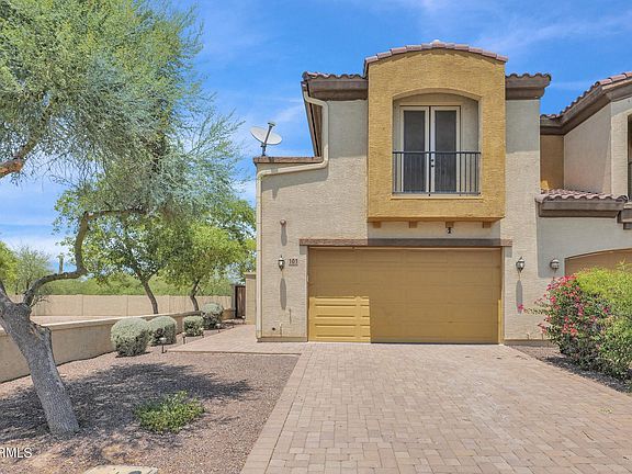 Nestled within the prestigious 85215 zip code in Northeast Mesa, this end unit townhome features a functional layout with a downstairs greatroom, dining room, eat-in kitchen, powder bathroom, and den. Upstairs, you'll find 3 spacious bedrooms - all with ensuite bathrooms and balcony access - a modern loft, and convenient laundry room. This well-designed floorplan seamlessly connects the living, dining, and kitchen spaces. The large kitchen offers plenty of countertop and cabinet space with 42'' uppers, new Samsung stainless gas appliances, and an inviting breakfast bar. Sitting on a north/south lot that sides to a common area and includes a private yard that is ready for your personal touch. A sizable 2.5 car garage with ceiling mounted racks provide plenty of storage options. Convenient access to the 202 freeway, shopping, restaurants, top rated schools, and fantastic hiking and biking trails. FURNISHINGS CAN BE INCLUDED... See Documents for the full list! With its exceptional design, prime location, and fantastic features, this home is a true must see!