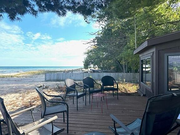 Northern Michigan at it's finest!!! The Up North vibe of this spacious year round home is awaiting you and all your guests. This home comes fully furnished and is completely turn-key. Numerous entertaining areas are perfect for morning coffee while watching the sunrise or just enjoying the breeze from the lake side family room while playing board games. This 3-4 bedroom fully furnished home has plenty of sleeping space, plus there is a bonus loft that the young ones will be delighted to claim as their own! There is sugar sand as far as you can see. Bonfires on the beach will be the highlight of your summer in your very own paradise. There are 3 ample sized bathrooms, plus main floor laundry. Your guests and pets alike will enjoy the large wooded fenced area with a patio for those breezy nights. All of this plus the detached 4 car garage which will easily hold at least 2 cars on road side and on the lake side it is perfect for storing an additional 2 cars or water toys or use for a game room such as ping pong and air hockey. Owners are using this for their personal use and also AirBNB which made $35,000 last year. Rental history is available. There is also an adjacent 0.8 acre buildable lot as well included as well.