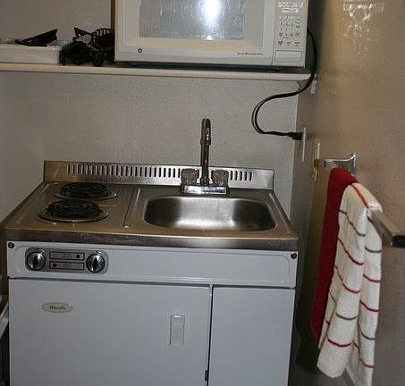 We offer fully furnished kitchenettes on a month-to-month basis with all utilities included. Monthly rates start at $550 per month for a small unit with a two-burner stove-top and small refrigerator; bigger units with a full kitchen rent for $600 per month. Both require a deposit in an amount equal to the rent. All tenants are required to pass a background check. Pets are welcome with an additional non-refundable $200 pet deposit.