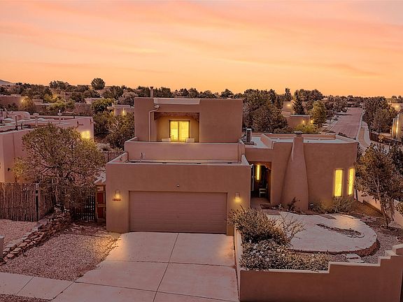 Welcome to this beautifully maintained home in the sought-after Pueblos de Sol subdivision, offering comfortable living and sweeping views. Recent upgrades include a modern kitchen with stainless steel appliances, granite countertops, and a spa-like primary bathroom with a standalone tub and custom stone tile. The primary suite also features a private deck with durable Trex decking. A TPO roof was installed in 2022. Enjoy year-round comfort with 5 mini-splits and radiant heating. Outdoor living shines with multiple decks, a charming courtyard, mature trees, and drip irrigation. A separate-entry studio/guesthouse with full bath offers rental or creative flexibility. Don't miss this Santa Fe gem! Trails and parks nearby!