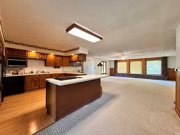 Offered for sale is a charming 2,376 sq. ft. ranch home featuring 4 bedrooms and 2 bathrooms. This home is designed for comfortable living with a large, open central area that seamlessly integrates the living room, dining area, and kitchen, perfect for family gatherings and entertaining. 3 bedrooms are located on one end of the home while the main bedroom and large bathroom is located on the other end. A large laundry room/mudroom is located on the south end of the home providing enough room to comfortable come inside, take your boots off, hang your coats up and to fold laundry. Outside of the living room/dining area is a small patio area where the peacefulness and quietness of the surrounding area can be enjoyed. Stepping out the back door, you're surrounded by beautiful rolling, hardwood timber. Out the front door you can enjoy the peacefulness of tillable fields across the road. Although the home could use some updates, the layout of the home provides a great footprint for a beautiful farm style ranch home out in the country.