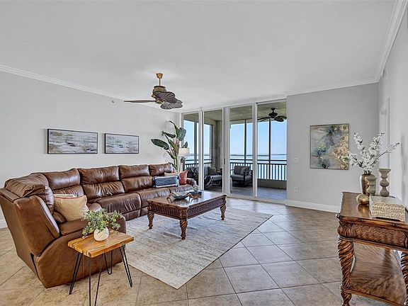 Welcome to your coastal sanctuary — this beautifully updated, TURNKEY 3-bedroom, 2-bath residence with a den offers 2,306 square feet of interior living space and an additional 190-square-foot screened-in WATERFRONT balcony with breathtaking water views of the Gulf and the iconic Skyway Bridge. Inside, you’ll find a bright, open floor plan anchored by a FULLY REMODELED kitchen completed just 1.5 years ago. Showcasing BRAZILIAN CRYSTAL countertops, quartz backsplash, stainless appliances (including a convection oven with built-in air fryer), LED lighting, and a tankless hot water heater, this space is as functional as it is stunning. Plantation shutters and CROWN MOLDING throughout. Also engineered hardwood in the bedrooms add an elegant coastal touch throughout. The den offers double glass French doors and a custom built-in office. The spacious primary suite features CUSTOM CLOSETS with crown detail and a spa-style bathroom with a large walk-in shower, jetted whirlpool tub, linen closet, and private water closet. A SEPARATE LAUNDRY ROOM includes side-by-side washer and dryer, and the property is equipped with a whole-house water purification system that self-regenerates. Offered FULLY FURNISHED AND OFFERED TURNKEY, this home also includes two private storage rooms, an assigned under-building parking space, and a new roof installed June 2025. Set within a secure, GATED GOLF COMMUNITY, residents enjoy access to a long list of amenities including a full-service restaurant, fitness center, tennis courts, resort-style pool and spa, fishing pier, walking trails, and more. This exceptional location offers easy access to everything — just minutes to award-winning white-sand beaches, and close to Sarasota, St. Pete, Tampa, Clearwater, and vibrant Bradenton Main Street. You’re also near the Gulf Water Ferry, giving you a relaxing, scenic way to reach popular restaurants and beaches without ever sitting in traffic. Whether you're soaking in a Gulf sunset, relaxing on your private balcony, or exploring Florida’s best coastal towns, this is the lifestyle you’ve been dreaming of.