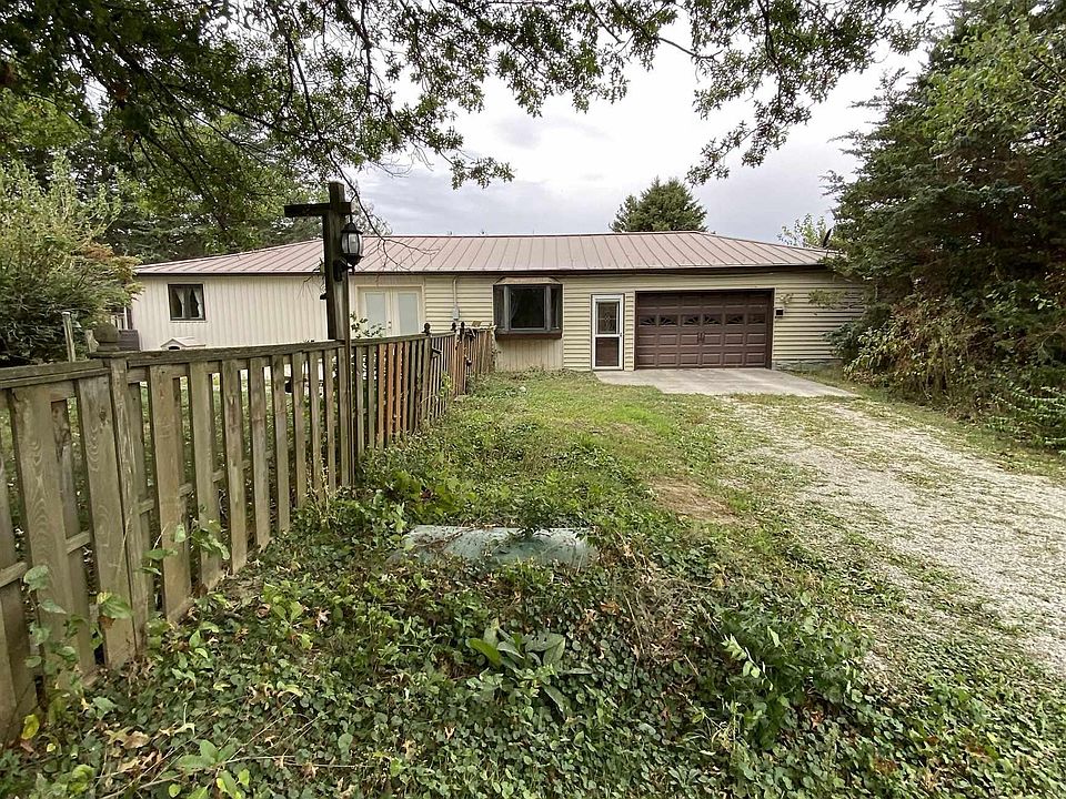 2 Bedroom 2 bath Ranch home built in 1979 with custom Kitchen done by American Homes. New septic system 2024, on 3 acres m/l extra large attached garage with bar with log trim and shop area. Storage shed/Office detached. Extra large detached garage with workshop area with electrical and log trim on the front. Also a large metal shed 24' x50' with front and back overhead doors. Tree lined with grassy areas also. 3 patio areas with fenced in area for pets. Lots of privacy and quiet. Concrete Storm Shelter.