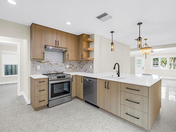 One or more photo(s) has been virtually staged. Just three blocks from the heart of Gulfport, this fully remodeled 3-bedroom, 2-bathroom block home puts you right in the middle of one of the most vibrant communities in Florida. Gulfport is known for its artistic, waterfront charm with lively festivals, art shows, a marina, and an incredible selection of local restaurants. It is the perfect location to enjoy it all! Inside, the home features an open and light-filled floor plan with a custom kitchen showcasing Londos cabinetry, quartz countertops, new Kitchen-Aid Gallery appliances, updated windows, and coastal finishes throughout. Updates include new bathrooms, doors, lighting, hot water heater, and the patio/carport roof was replaced in 2023. There are three spacious bedrooms, with the middle room also serving perfectly as a den or home office. Step outside to an expansive covered patio ideal for entertaining or relaxing Florida-style evenings. The exterior offers a laundry room, storage shed, tropical landscaping, and a charming picket fence that completes the coastal vibe. This move-in-ready Gulfport gem is the perfect opportunity to enjoy the best of Florida living in an exciting community!