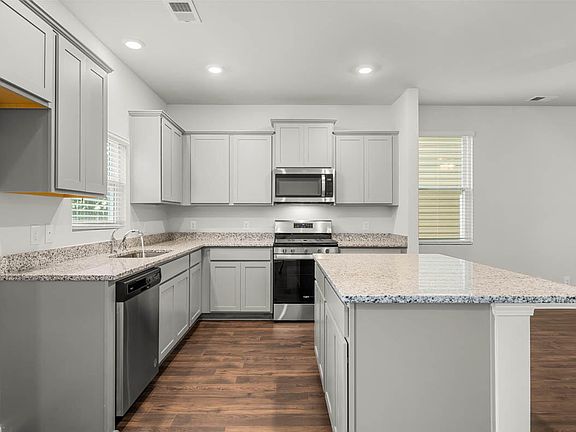 - Blinds, Eat-in Kitchen, Garden Tub, Kitchen Island, Pantry, Walk-In Closet(s), Washer Hookup, Electric Dryer Hookup