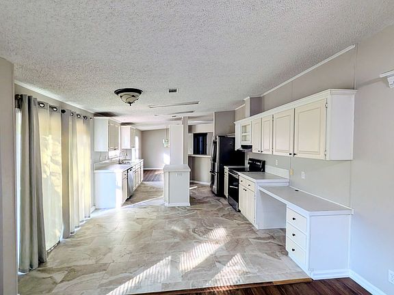This refreshed three-bedroom, two-bath manufactured home is set back from the road on a wooded lot of more than two acres, offering total privacy. Inside, the home has been freshly painted and features brand-new laminate flooring throughout, with no carpet anywhere. The spacious split floor plan includes two separate living areas a family room and a living room along with a separate dining room.