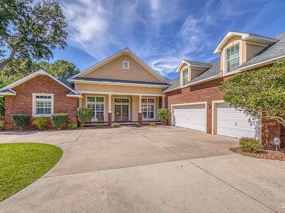 Brand new roof!! Step into elevated living in this custom-built pool home, ideally positioned on an oversized lot in one of the area’s most distinguished golf course communities. A circular drive and charming front porch create a grand first impression, while inside, hardwood floors, custom tilework, and detailed millwork reflect thoughtful craftsmanship throughout. The kitchen is designed for both beauty and function, offering a large center island, double ovens, custom shelving, and generous bar seating—fantastic for casual dining or entertaining with ease. The main living area features a gas fireplace flanked by rich wood built-ins, creating a warm, sophisticated space. A separate study with its own built-ins provides the fantastic home office or quiet retreat. The luxurious primary suite offers a serene escape with tray ceilings, natural light, and a spa-style bath complete with a soaking tub, walk-in shower, and refined finishes. Outdoors, enjoy year-round relaxation with a screened-in pool and spa, a covered porch, and a newly updated pool bath accented by vibrant turquoise tile. With a brand new roof and recent 4-point inspection, this home is move-in ready and made for lasting enjoyment. Experience luxury, comfort, and community in one of the most desirable neighborhoods on the Gulf Coast.