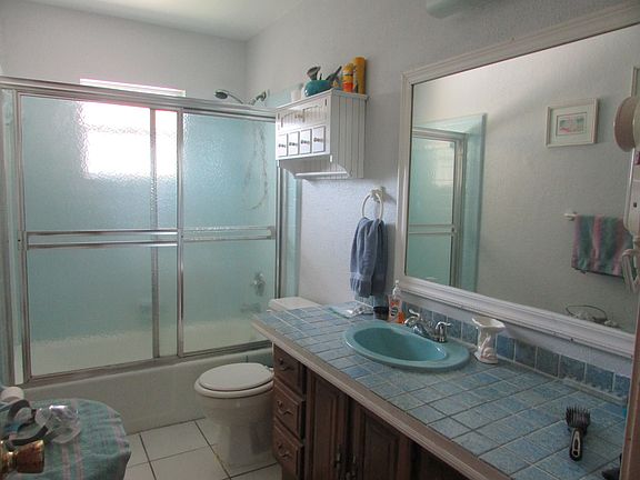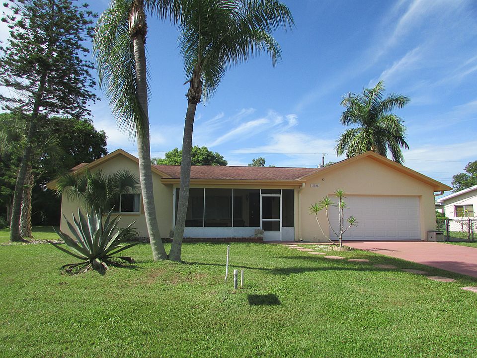 BACK ON MARKET - NEW ROOF INSTALLED 10/2019, A/C AND GARAGE DOOR BOTH REPLACED IN 2017. THIS IS A VERY UNUSUAL FLOOR PLAN - TWO BEDROOMS, ONE BATH ON THE EAST SIDE OF THE HOME AND THEN THE 3RD BEDROOM THAT CAN BE ALSO USED AS AN OFFICE IS IN THE BACK OF THE HOUSE WITH SLIDERS THAT LEAD OUT TO A WONDER SCREENED PATIO, FULL BATH IS ON THE OPPOSITE SIDE OF THE HOME, ALL APPLIANCES STAY INCLUDING WASHER AND DRYER. NO CARPETS, TILE-VINYL -AND LAMINATE ONLY. SIDE YARD HAS A BOAT OR TRUCK SLAB, OVER SIZED 2 CAR GARAGE AND CITY WATER AND SEWER.BUYERS FINANCING FHA FELL THROUGH.