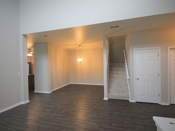Beautiful end-unit in desirable Harvest Hills! Gorgeous newer flooring throughout, brand new flooring on 1st floor just installed. 2 story living room is open to formal dining room with modern chandelier. Large 1st floor family room. Kitchen with granite island/breakfast bar, all BRAND NEW stainless steel appliances. Sliding glass door to private patio, open to green space. First floor laundry and half bath. Enormous master suite offers private bathroom with long vanity, walk-in shower, separate water closet, and walk-in closet. Generous 2nd Bedroom and large full bath. Big Loft is perfect for office or playroom and overlooks living room. 2 Car Attached Garage. Great location, desired D303 schools! This home shows great, very clean & neutral and will not last