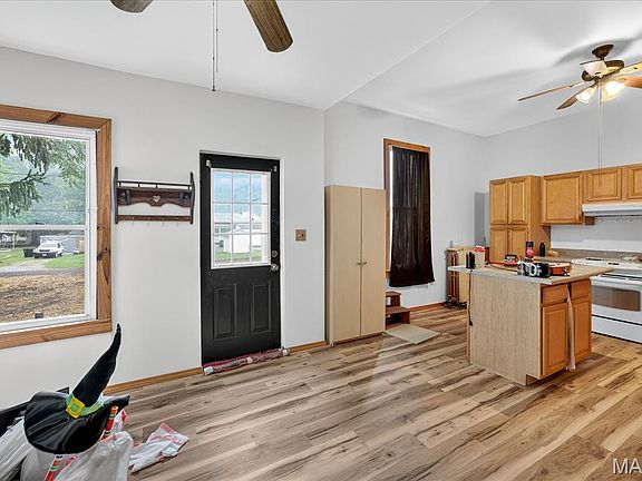 Center islandDetached garageLarge eat-in kitchenOpen concept living spaceAdditional parking spacesDining room