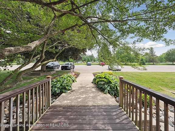Move-in-Ready Condo Across from MSU. Across from Michigan State University, this 2-bedroom, 2-bath condo pairs prime location with everyday livability. With its Okemos address, no rental license is required — a rare advantage for owners or investors. Inside, the spacious primary suite accommodates large furniture plus a study or hobby area, complemented by a private bath with walk-in shower and dual closets. The second bedroom fits twin storage beds and includes its own closet, while the main bathroom offers a tub/shower combo.