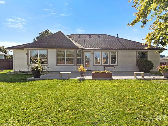 Indian Village is in Canyon County not Nampa City. Low property taxes. Spotless home is very well maintained inside and out. Ramps at front and rear doors. No steps! Large lot over 1/4 acre with mature landscaping including huge maple. Largest bedroom currently used as a TV room/den. Office nook in master. Indian Village has a community water system that currently costs $60 per month and includes unlimited water use. Please see disclosure regarding water system. All homes have private septic systems. This home has a breakfast bar, a breakfast nook and formal dining areas. Ideal for entertaining. Looks like a 2 story due to dormer windows, but its a single level. Very light inside due to Southern exposure. Garage has a full length workbench on one side and storage cabinets on the other side. Outside storage shed in 16'X8' for mower and outdoor equipment. Two 13X9 raised garden beds with water access. All windows replaced with new frost free vinyl windows. Roof, furnace, A/C and water heater all replaced. Indian Village Sub has wide streets and homes on Navajo Dr are well maintained. This home is move in ready! Huge 28'X17' concrete patio. All bedrooms have walk in closets.