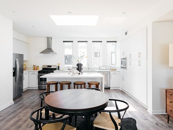 Built in 2016, this sleek & bright tri-level townhome is in prime Silver Lake & in the coveted Ivanhoe school district. This home feat a flexible open floor plan w seamless flow from the gorgeous Chef's kitchen to the living area & leads to a balcony w views to Griffith Observatory. The main living level also has high ceilings & a powder rm. The modern kitchen features stainless appl & a breakfast bar island. The owner's bedrm features a custom walk-in closet, double vanity & a large shower. The 2nd bedrm features a customized closet & en-suite bathrm. The 3rd bedrm/bathrm can also be used as an office suite. This smart home also feat wiring for tech & is pre-wired for surround sound, solar panels & an electric car. It has central HVAC w Nest thermostat, in-unit sidexside laundry & a priv direct access 2 car garage w storage. Low HOA dues incl EQ insurance. Dine at the nearby Little Pine, Edendale Grill & Blairs or entertain friends on the spacious private roof-top deck w 360 views.