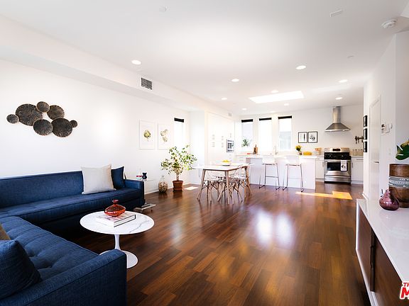 Bright and modern view town home in ideal Silver Lake location and only steps to Ivanhoe Elementary. 3 beds, 4 baths. This coveted end residence offers a unique open and flexible floor plan designed to maximize light and views in the main living spaces. Sip morning coffee on the step-out balcony or cocktails on the spectacular roof top oasis. Then stroll to Little Pine, Edendale Grill, Blairs and some of Silver Lakes finest restaurants, shops and night life. Chefs kitchen. Smart Home technology, alarm and solar panel ready. 3rd bedroom transforms into optional work suite. Direct access garage entry. A true architectural sanctuary.