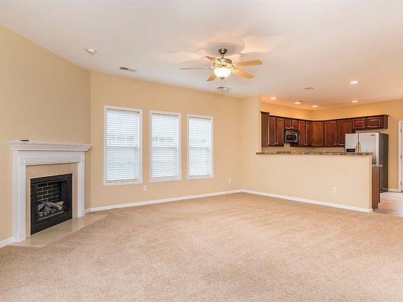 Super Clean Ranch Home in Kearney Hall! Spread out in this beautiful 3 BR home with a scenic back yard & 2 car attached garage. Walking through the front door you are greeted by ceramic tile in the foyer & the open great room that flows into the kitchen area. Stunning fireplace in the great room while you whip something up in the kitchen on your stainless steel kitchen appliances. The backyard is spectacular on this house as it backs up to mature trees and a lot of green space.