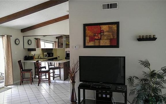 You walk in and step down into living room/dining room combo, to the left is the Master Suite with updated bathroom with Japanesse bath tub, tile new, laminate flooring, ceiling fan and sliding glass doors to pool area. then to the right you have your second Master Suite with bathroom with shower and then walk into the kitchen area from living room area which also leads to 1 car garage with washer/dryer hookup. You also have a carport for one car and extra space next to house for more parking and a gate that leads to huge back yard for parking. from living room sliding glass doors leads you to the screened in porch that leads you to the back yard and pool. Landscaped updated recently around pool. Lake Access to Bear Lake. Neighborhood Description Just up the street a mile away is shopping and restuarants, great area.