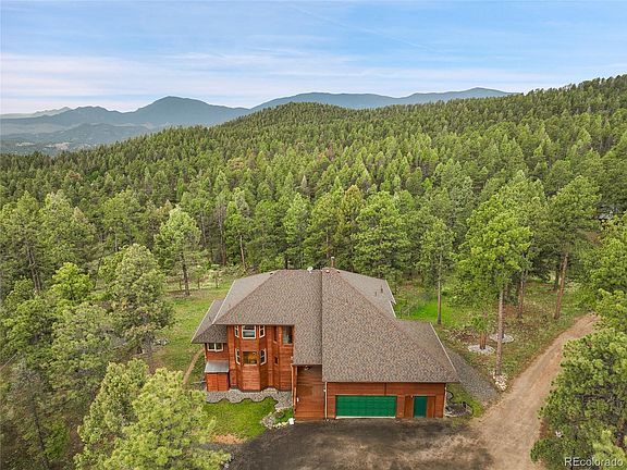 Nestled on 5 private acres, this spacious home offers the perfect blend of comfort, adventure, and breathtaking scenery. Inside, you'll find open-concept living with multiple entertaining spaces, ideal for gatherings both big and small. Expansive windows frame majestic views of Pikes Peak, while both decks invite you to unwind under Colorado skies. Your very own private hiking trail winds through pine and aspen, offering serenity and seclusion just steps from your door. Whether you're hosting a crowd or soaking in the peace of mountain living, this property delivers the Colorado lifestyle at its finest. 8 person bedroom Septic, Household well, A-2 Zoning. https://v1tours.com/listing/58027/ - OPEN HOUSE This Weekend!