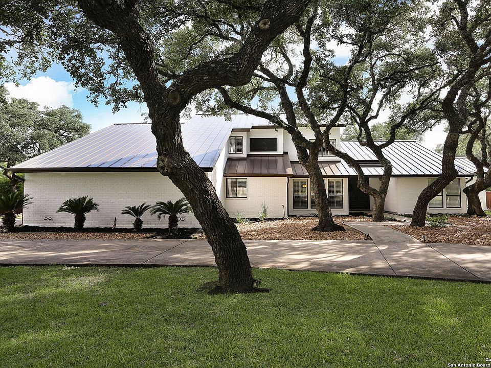 Experience luxury living in this newly renovated 5BR/4BA estate on .96 acres in the prestigious, manned-gate Raintree Woods of Fair Oaks Ranch. Steps from Fair Oaks Ranch Country Club, this home offers refined living with a 3-car garage, office with built-ins, and a "Man Cave" with wet bar, Sub-Zero mini fridge, and Scotsman ice maker. Dual-level design features a main-level primary suite and guest/office, plus 3 upstairs bedrooms. The kitchen dazzles with Sub-Zero fridge, 30" wine fridge, Wolfe range, and bar seating. An entertainer's paradise awaits outdoors, featuring a resort-style pool and spa with a swim-up bar, an impressive 1,100 sq. ft. covered kitchen outfitted with premium Lynx appliances, a Green Egg, ample storage space, surround sound, 2 televisions, and a gas-lit fireplace-plus a Coolstone firepit with bar seating, perfect for gathering any time of year. Gated elegance meets country club lifestyle on Seabiscuit Dr.