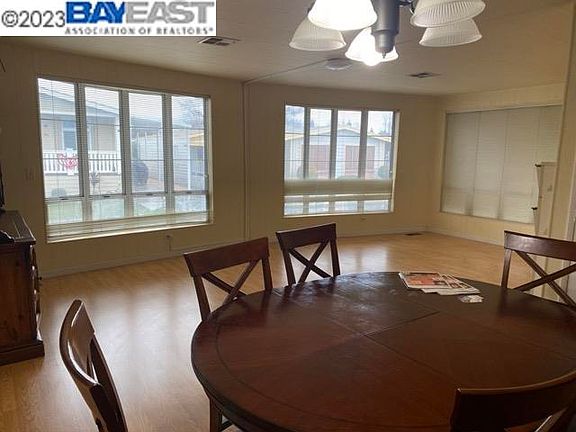 Take a look at this Triple-wide! It features a roomy primary bedroom that has a large walk in closet w/IKEA space savers and shelving, a primary bath w/newer walk-in tub and vanity with his/hers sinks! Large living room and dining room w/built-in china cabinet. Kitchen has been updated, all appliances stay! Huge family room with full bar and sink. Dedicated Laundry room. Most all windows are dual pane. Large covered entry porch and long covered parking. Storage shed. Close to shopping. Clubhouse has organized events, plus there is a pool AND spa! Park requires that one person must be over 55, others over 18. Other park requirements, too, so please visit the manager's office in the Clubhouse. Space rent is $951.62 per month. Pets upon approval. Thank you!