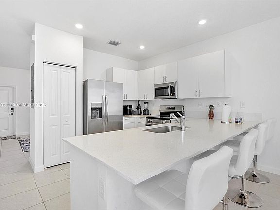 LARGEST BRAND NEW CORNER TOWNHOME in Cedar Pointe! Features 3 bedrooms and 2.5 bathrooms, quartz kitchen countertop, stainless steel appliances, full-size washer and dryer, impact windows with newly installed blinds in every room, tile first floor, carpeted second floor, Ring technology, and keyless entry. Enjoy the spacious open concept kitchen with abundant natural light and a charming fenced backyard without a direct neighbor behind it. You'll find convenience with 2 parking spots directly in front of house and plenty of guest parking. Internet is included in rent. Amenities include a club house and swimming pool - coming soon. Close to shops, schools, 5 minutes from Turnpike, and 35 minutes from the Miami International Airport.