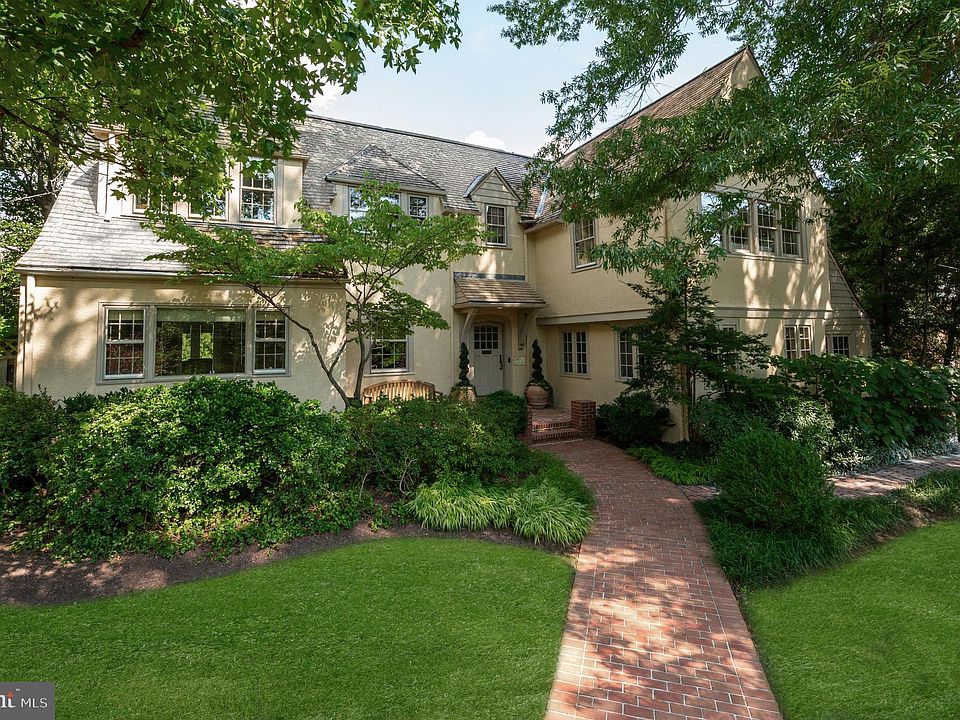 Synonymous with architectural charm and timeless appeal, the grand homes of Wesley Heights are among Washington’s most desirable. Within this verdant enclave lies 2927 44th Street NW, a European-inspired Tudor originally constructed in 1927. Perfectly sited just above street level on a private double corner lot of nearly half an acre, the residence combines historic character with thoughtful modern updates implemented beautifully by Solis Betancourt. A brick walkway meanders through the manicured front lawn, traversing a brick retaining wall upon which a neatly-trimmed row of hedges sits. The residence, with its gables, dormers, and cream stucco exterior, exudes the quintessential Tudor charm. The main entrance is located off a cozy brick patio beneath a petite portico, opening to reveal 5,100 square feet of ethereal interiors. The foyer introduces bright wood floors, sleek recessed lighting, and the grand staircase with an artful wrought iron baluster. Designed for large-scale entertaining, the formal living room spans 27 feet in depth and features a roaring wood burning fireplace framed by two sets of French doors elegantly opening onto the rear terrace to introduce an al fresco lifestyle. A sunroom is tucked away, with large picture windows overlooking the front grounds and a wall of built-ins for a quiet reading nook. Likewise, another sunroom is attached to the embassy-sized formal dining room, ideal as a private office. At the heart of the home’s informal wing is an open concept kitchen and family room. The former balances form and function with cathedral ceilings, granite counters, ample cabinetry, and top-of-the-line appliances from Thermador and SubZero. The latter features soaring vaulted and beamed ceilings with skylights, augmenting open sightlines to the rear patio via glass doors. A discreet wing contains a full main level bedroom suite. The upper level primary suite is entered via a dedicated vestibule within its own wing. A private sitting area is flooded with natural light. Ubiquitous luxuries include a gallery-like walk-in closet lined with built-ins and a marble bath with dual vanities, soaking tub, and heated towel rack for a sanctuary of comfort. Two additional bedrooms are located on the opposite side of the upper level, each with built-ins, expansive windows, and ensuite baths. On the loft level above is a fifth bedroom suite and attached bonus room. A sixth bedroom, ideal for an au pair or in-law suite, is found on the lower level in addition to a full bath and generous laundry room. A practical driveway runs along the side of the home, leading to the carport, motor court, and a detached room which serves as an exemplary fitness center, yoga studio, or zen space. Evoking cues of the Cotswolds with its yellow pebble paths and geometric greenery, the rear lawn, designed by Katia Goffin, was celebrated in Home & Design Magazine, exemplifying a seamless blend of hardscape and horticultural artistry. An elevated brick patio surrounds the heated lap pool, from which a sweeping view of the masterful grounds can be captured. Without peer in terms of location, the home is less than half a mile from Foxhall Square, 1.5 miles from the vibrant establishments of the Palisades’ main street, and just over two miles to Georgetown. Gracefully uniting timeless design, luxurious amenities, and extraordinary grounds, 2927 44th Street NW is a historic Tudor reimagined for modern living.
