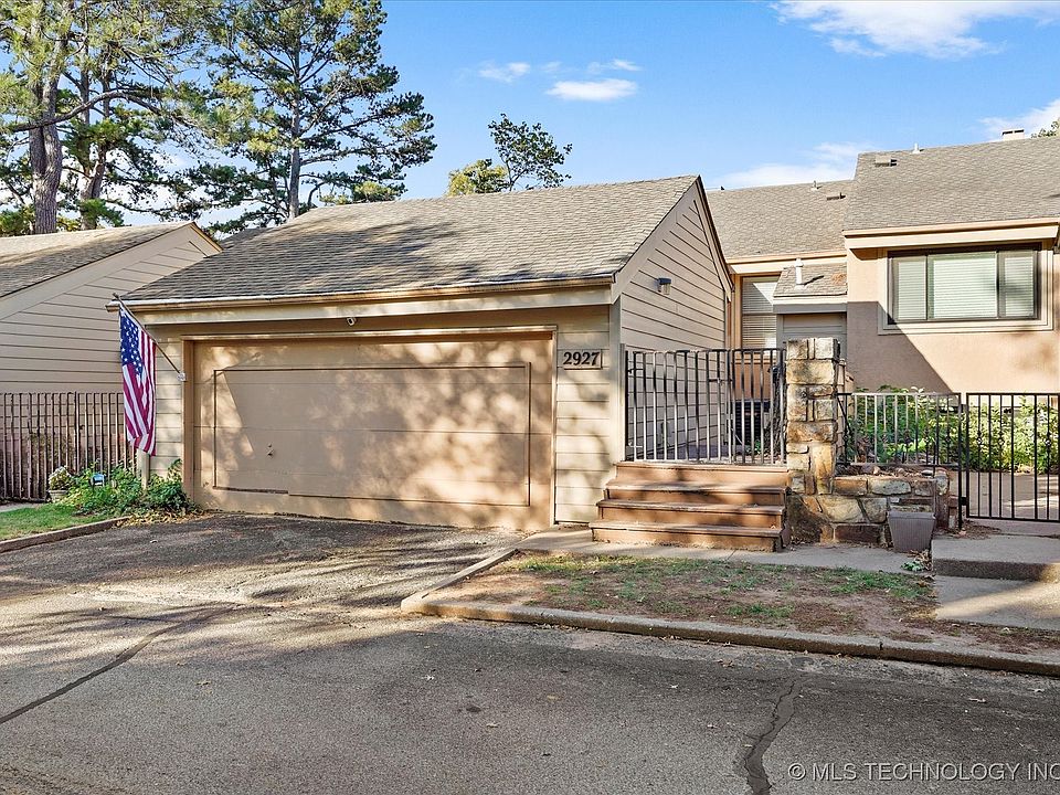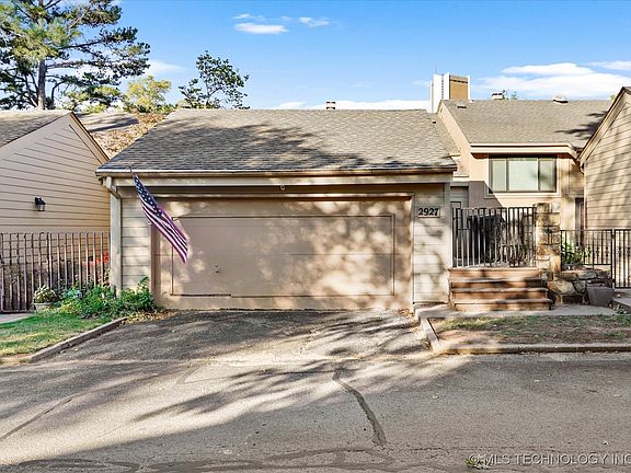 Conveniently located to Jenks East Elementary School, Riverparks, shopping and ORU. 2 bedrooms, 2 full bathrooms, split-level, cozy fireplace, balcony and a patio, 2-car garage, eat-in kitchen and a dining area combined with living room. Great starter home or investment property. PRICED TO SELL QUICKLY!
