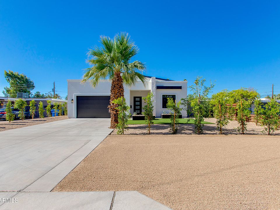 Discover brand-new construction ideally situated between Arcadia and the Biltmore, offering luxurious living at an incredible value. As you enter, you're welcomed by soaring vaulted ceilings, 8-foot doors, and stunning oak floors. An elegant foyer leads you to the first of three guest bedrooms. Continue into the great room and step into your contemporary kitchen, featuring quartz countertops, a gas range, soft-close cabinets, and a touchless faucet. Retreat to your primary suite, boasting views of the sparkling new pool, easily controlled with motorized blinds. The bathroom is a true sanctuary, complete with a soaking tub, glass shower, double vanities, and a spacious walk-in closet. Unwind in the backyard, lounging by the pool or relaxing under the covered patio as day turns into night.