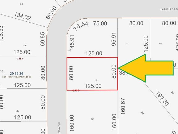 It is one of 2 side-by-side adjacent buildable single family residential lots [1 is an interior lot and 1 is a corner lot] with Rs-2 zoning available in Port Malabar Unit #30 of Palm Bay. Nicely located in the rural SW section near Bayside Lakes Subdivision and 2 miles from the famous Compound are, this lot is just 2.1 miles -5 minutes- to Publix Shopping, 3.7 miles -9 minutes to Bayside High and Westside Elementary Schools, 12.9 miles -34 minutes- to the Melbourne Square Mall, and just 20.1 miles -38 minutes to the beaches in Indialantic. From Exit #176 of I-95 go west on Palm Bay Road. Turn left on Minton Road and proceed south for 3.3 miles Turn right on Jupiter Boulevard SW and left on Degroodt Road SW. Proceed south for 4.5 miles and turn right on Lafleur Street which becomes Fowler Avenue. The corner lot and the adjacent lots are on the left hand side of the road