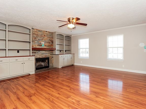 This Murfreesboro, TN rental home has many coveted features, including a charming front porch, an attached garage, and a pet-friendly interior with over 2,100 square feet. The five-bedroom, three-bathroom layout starts with a beautiful living room featuring built-in bookshelves and a charming brick fireplace. Laminate flooring shines under the lighted ceiling fan. The eat-in kitchen will impress home cooks with its modern appliances and stylish countertops. Open the glass door to access the home's wooden deck outside. Laminate flooring and a lighted ceiling fan highlight the features of the main bedroom suite, which has ample space to store your belongings in the walk-in closet. Take advantage of having a combination bathtub/shower in the en suite bathroom. Schedule your tour today.