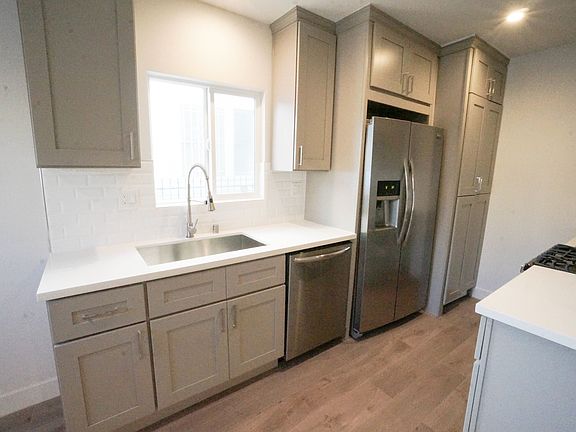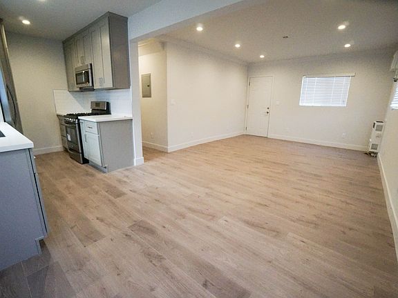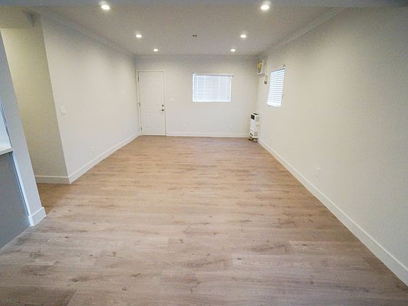 This gorgeous fully gutted 1 bedroom/1 bathroom apartment features brand new hardwood flooring and crown molding with recessed lighting throughout the unit. Beautiful kitchen with a full brand new set of stainless steel appliances (dishwasher, stove, refrigerator and microwave) and tons of cabinet space. Ceiling fan inside inside the bedroom and wall AC unit in the living room. Washer and dryer inside the unit for your convenience. Brand new kitchen and bathroom plumbing and accessories. Unit is located on the 1st floor. Located minutes away from USC, Mount St. Mary's University, The Shrine Auditorium and Expo Hall, and the 110 and 10 fwy. Amenities - Stainless Steel Stove - Stainless Steel Refrigerator - Stainless Steel Microwave - Stainless Steel Dishwasher - Laminate Flooring - Wall AC unit - Ceiling Fan - Recessed Lighting - Wall Heater - Washer & Dryer - The whole apartment is FULLY GUTTED and REMODELED UTILITIES: - cold water and sewer PARKING: - 1 parking spot. PETS: - WILL CONSIDER PET. DETAILS: - Beds/Baths: 1 BD/1 BA - 1 parking spot Rental Terms -Available: NOW - Application Fee: $15 - Lease: 1 year minimum. Please call our office at (310) 438-5695 to schedule a showing! Owner pays for cold water and sewer.