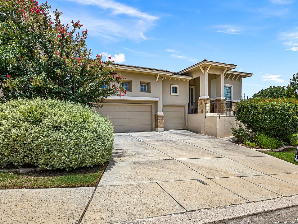 Stunning 4-bedroom, 4-bath home located in the highly sought-after Cliffs at Cibolo gated community. Spacious open floor plan ideal for entertaining, this home features mature trees, a rare 3-car garage, and a large master suite with vaulted ceilings and expansive windows that fill the space with natural light. The gourmet kitchen offers a generous rounded island, granite countertops and sleek stainless steel appliances. FIVE STAR SCHOOLS. Conveniently situated off TPC Parkway, you're just minutes from pre