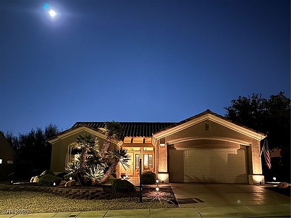 A BIG welcome home on Big Green Lane! This is the popular Tahoe model in fabulous Sun City Summerlin that boasts a bright, open floor plan and very clear pride of ownership. This stunning home sits on a large well manicured, elevated lot, with high quality finishes. Over $50k in improvements, pre-inflation. Premium porcelain tile throughout. Rolladen shutters w/remotes on outside of the windows and Sunburst shutters on the inside, keeping your energy bills low all year long! 10 ft. ceilings! The bright kitchen features stainless steel appliances, shaker style cabinets and a gorgeous backsplash. Laundry room w/window converted to an office with built-in cabinets. Large 2 car garage, featuring epoxy floors, built in storage cabinets, with a Kinetico Soft Water system that comes with the house. The original Sun City community has everything you need to brighten your Golden Years! Don't miss this fantastic opportunity to live in this highly desired neighborhood!