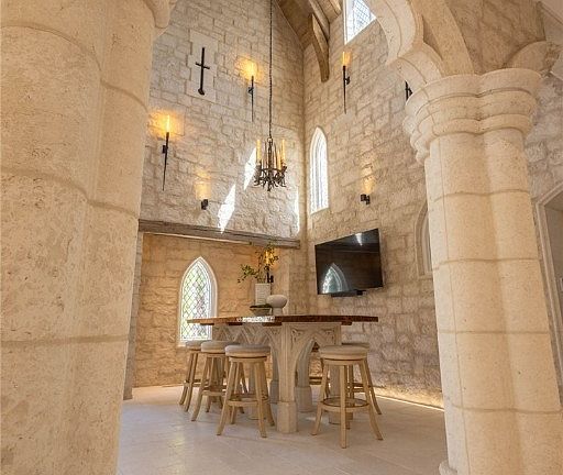 A reimagined 17th-century castle with modern soul, this architectural masterpiece blends European history with New York loft style & yacht-inspired craftsmanship. Transformed in collaboration with the principal cofounder of Blue Heron, Michael Murphy—who came out of retirement for this project—the home showcases rare artistry & intentional design throughout. Strategic sight lines create visual connections between rooms, enhancing flow & light. Artisan features include hand-crafted wood mosaic ceiling panels by a Ukrainian artist, custom-forged chandeliers & sconces, limestone flooring & cast stonework, & a 17th-century fireplace that anchors the great room. A Mykonos-inspired stairwell, a Scandinavian boutique-style primary closet, & a 16th-century French garden gate are just a glimpse into the level of detail. This once-in-a-lifetime property in the gated Lakes Estates boasts a private dock, rooftop deck, & more. Ideal for staff & guests, the neighboring home is also an option.