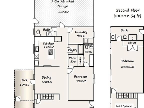 The county records say it's a 4 bedroom, the septic permit states it is 3 bedroom system. The floorplan shows 2 primary ensuites and a loft area used for bunkbeds. The garage is 22' x 30' for ample parking & storage.
