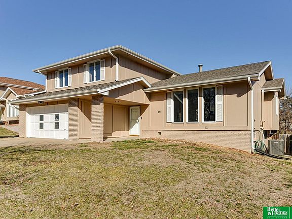 Impressively spacious Bellevue home in Leawood Oaks with over 2900 sq ft! Convenient access to Offutt AFB. So much value in this home! 4 bedrooms on the second floor is a rare find at this price. NEW LVP flooring throughout entire home, including basement. Large primary bedroom with attached 3/4 bath. Three other generous sized bedrooms share full bath. Updated kitchen with cherry cabinets, stainless steel appliances, granite counters, glass tile backsplash, and hardwood floors. Gas fireplace with traditional brickwork and raised hearth. Enormous walkout basement has wet bar, two separate family rooms, and 3/4 bath. MNewer roof, air conditioner, and water heater. Main floor laundry room has half bath. Newer washer and dryer included. Fully-fenced yard with privacy fence. Oversized two car garage. Only a half mile walk to neighborhood Elementary School!